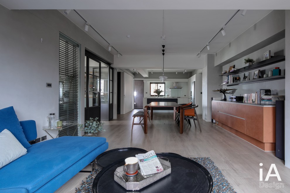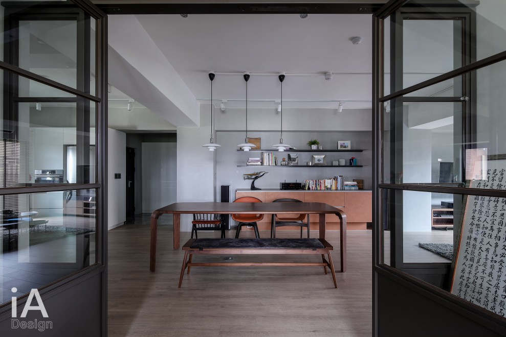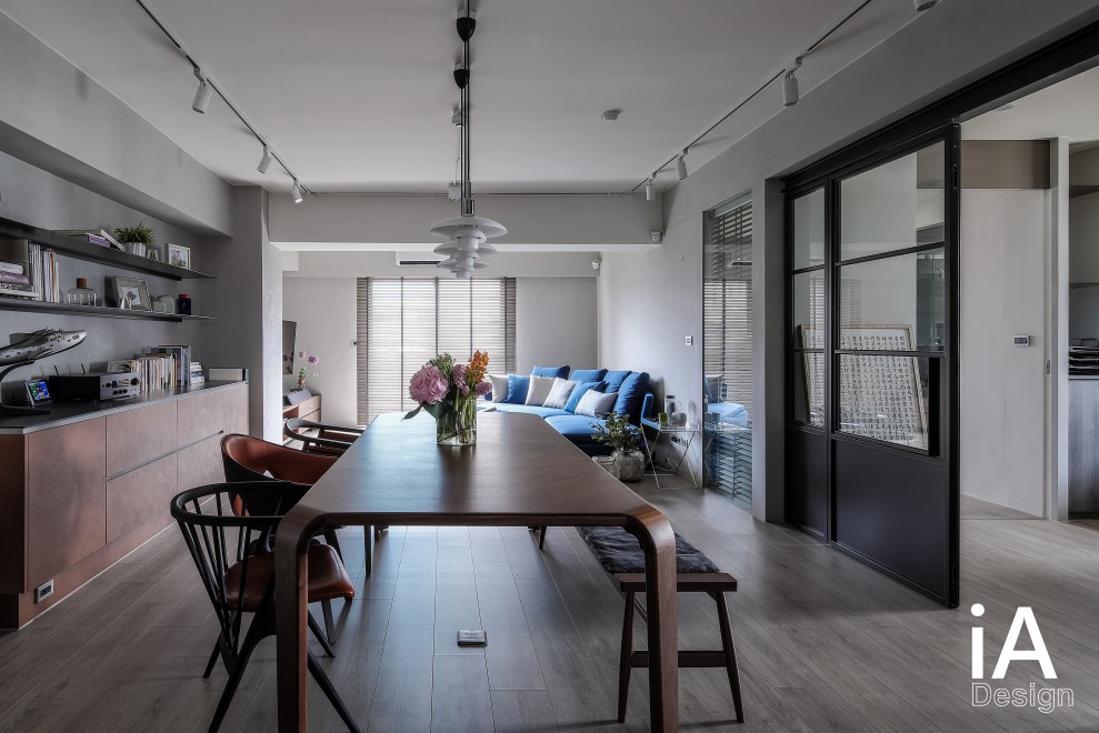 楊禾聿設計師將老屋予以改造,透過 Loft 風的挹注,把客、餐廳構置在同一軸線上,搭配開放視野的布局,