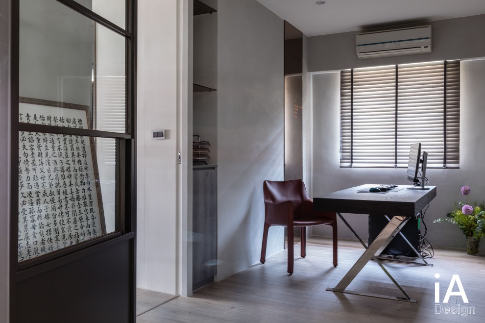 書房加入玻璃拉門,串起與其他場域的視線連結,並導引採光的流動,讓空間感更為通透廣闊;