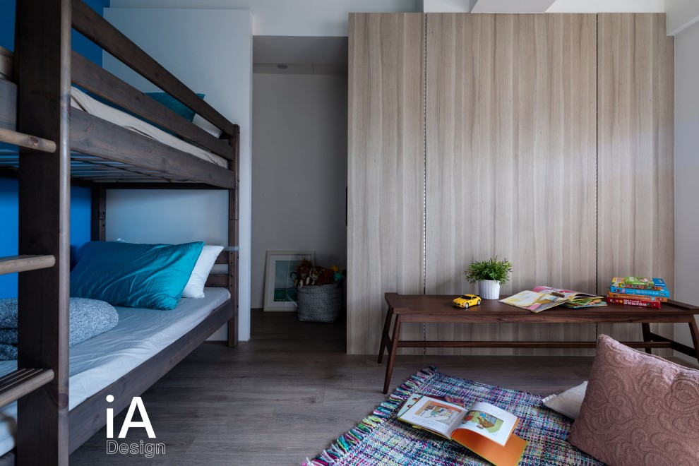 男孩房,設計師調整了房間大小,並規劃彈性上下鋪,再搭配活動家私、軟件,讓空間使用更具彈性餘裕!
