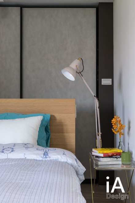 主臥內,運用俐落線條、典雅色彩的妝點,形塑時尚簡約的調性,並同步注入收納與展示功能,使空間兼具美感及實用性!