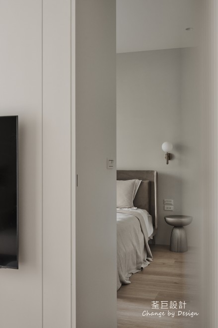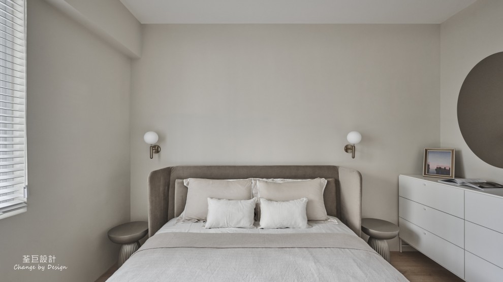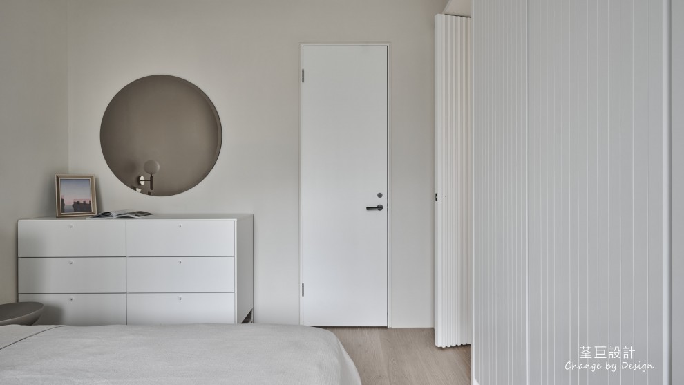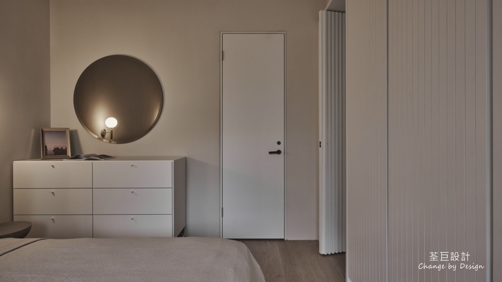 臥室空間使用優雅的矮櫃與落地衣櫃,完善了收納功能,讓屋主不再煩惱收納問題。