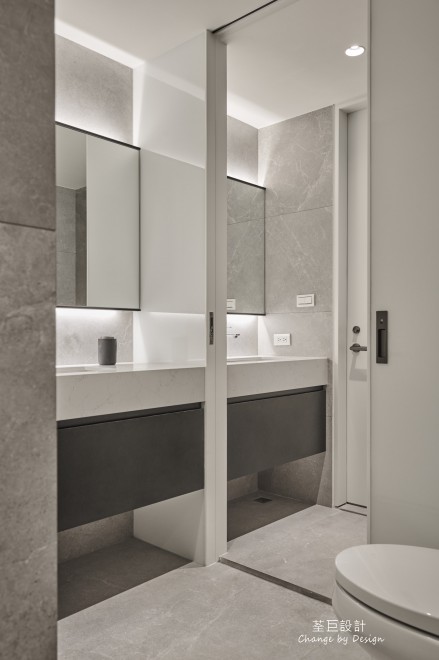 衛浴空間也經過了精心的設計,主浴與客浴合併,並以拉門隔開,讓空間更加開闊舒適的同時也能保有屋主隱私。