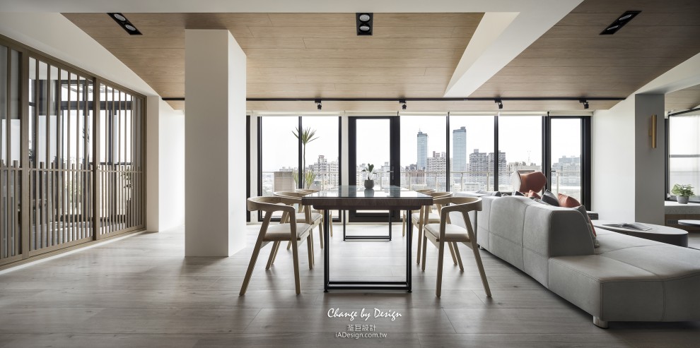 設計師將日式無印風融入中古屋設計,打通兩戶採用開放式格局,呈現出舒適寬敞的空間感,令整個室內更加透亮。