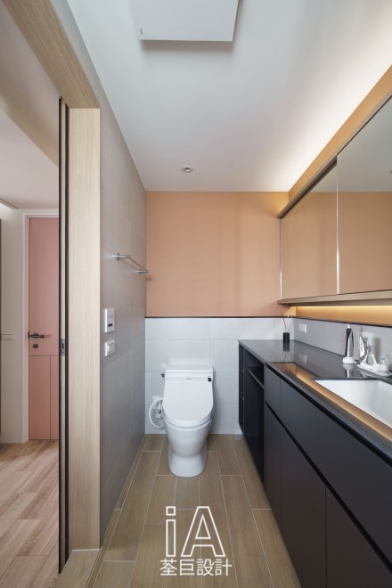 客浴除了乾濕分離的衛浴與免治馬桶,還特地安裝小便斗,從細節表現貼心的待客之道。