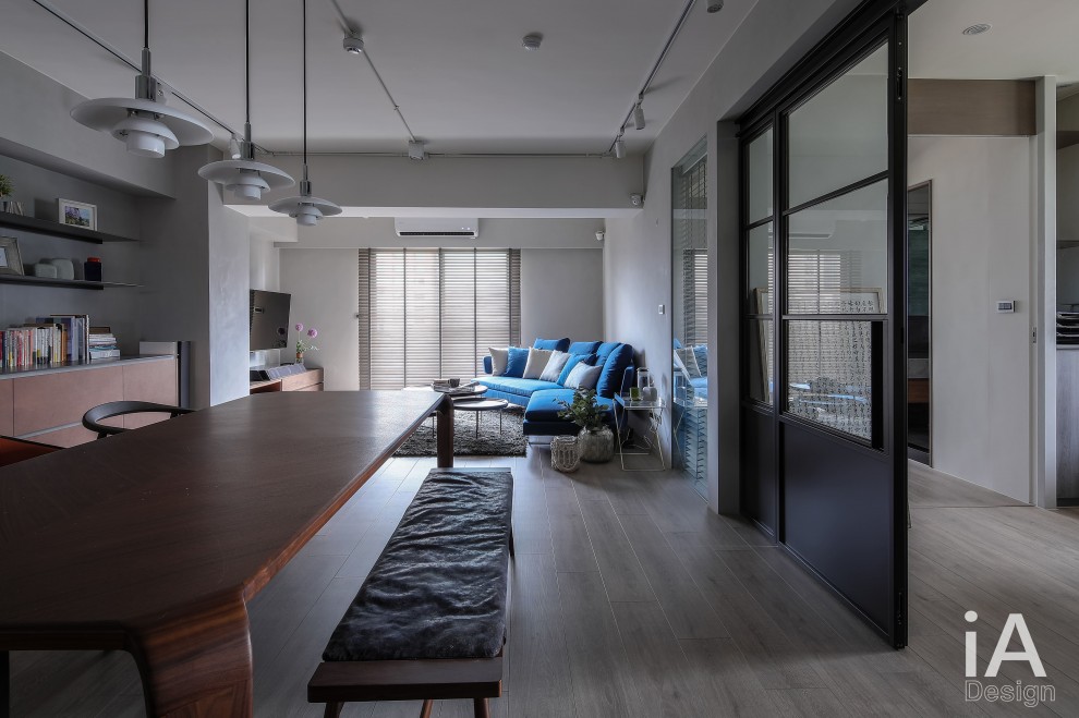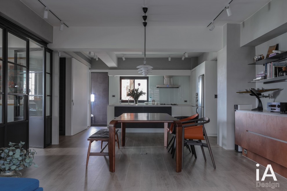 楊禾聿設計師將老屋予以改造,透過 Loft 風的挹注,把客、餐廳構置在同一軸線上,搭配開放視野的布局,