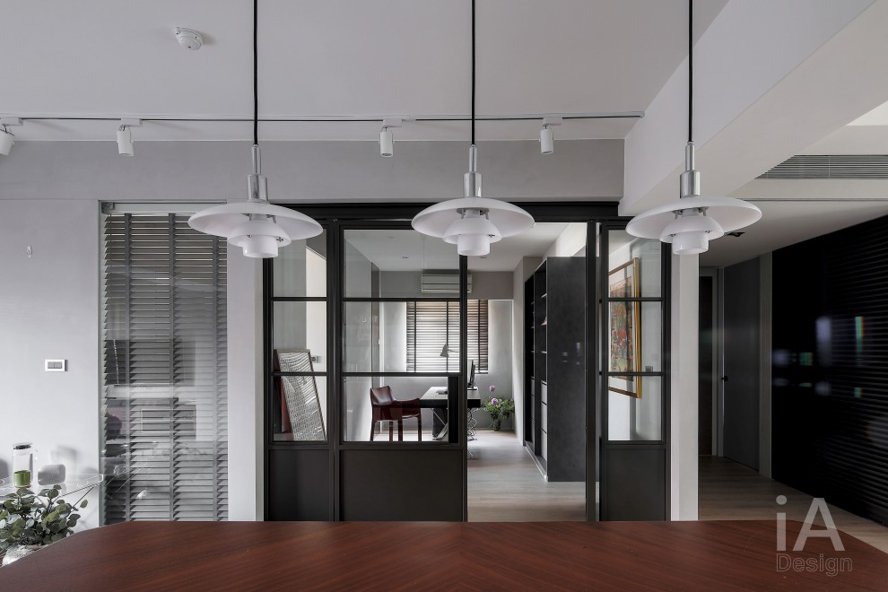 書房加入玻璃拉門,串起與其他場域的視線連結,並導引採光的流動,讓空間感更為通透廣闊;
