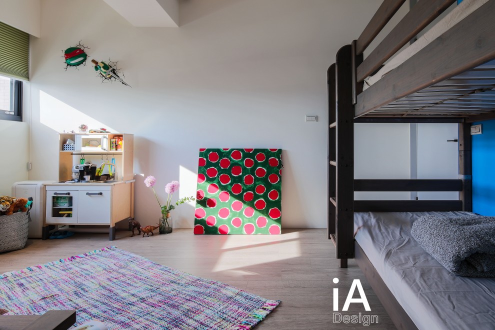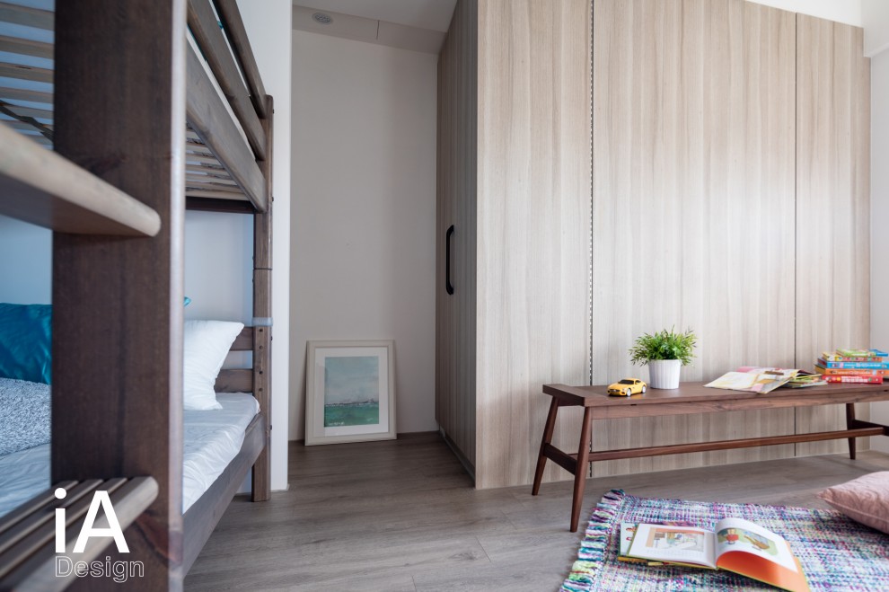 男孩房,設計師調整了房間大小,並規劃彈性上下鋪,再搭配活動家私、軟件,讓空間使用更具彈性餘裕!