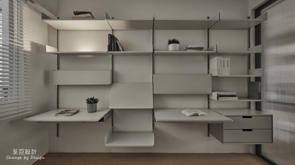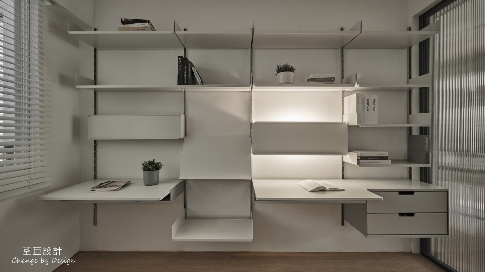 書房錯落的層板設計,不同的燈源打下,為書房帶來不同的溫暖氛圍,不僅兼顧了美感和實用性,更是給人帶來了靈感的源泉。