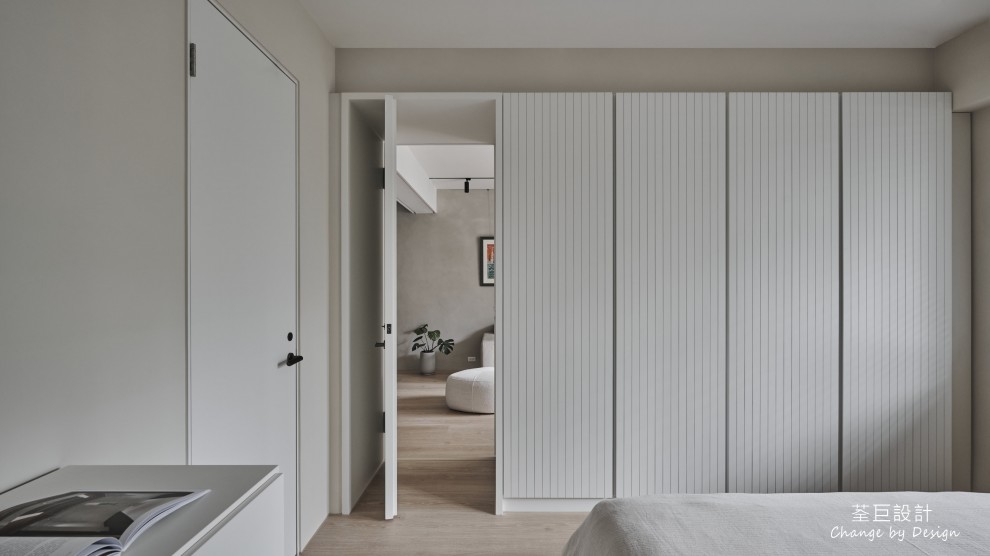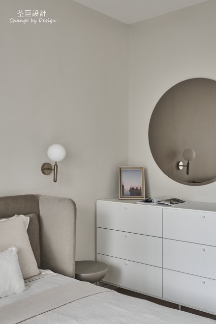臥室空間使用優雅的矮櫃與落地衣櫃,完善了收納功能,讓屋主不再煩惱收納問題。