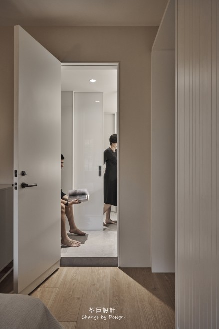 衛浴空間也經過了精心的設計,主浴與客浴合併,並以拉門隔開,讓空間更加開闊舒適的同時也能保有屋主隱私。