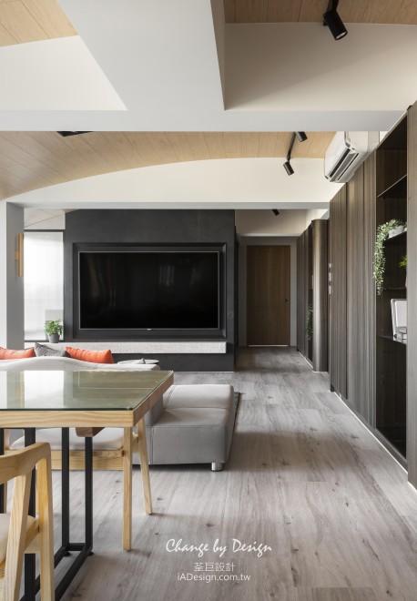 設計師將日式無印風融入中古屋設計,打通兩戶採用開放式格局,呈現出舒適寬敞的空間感,令整個室內更加透亮。